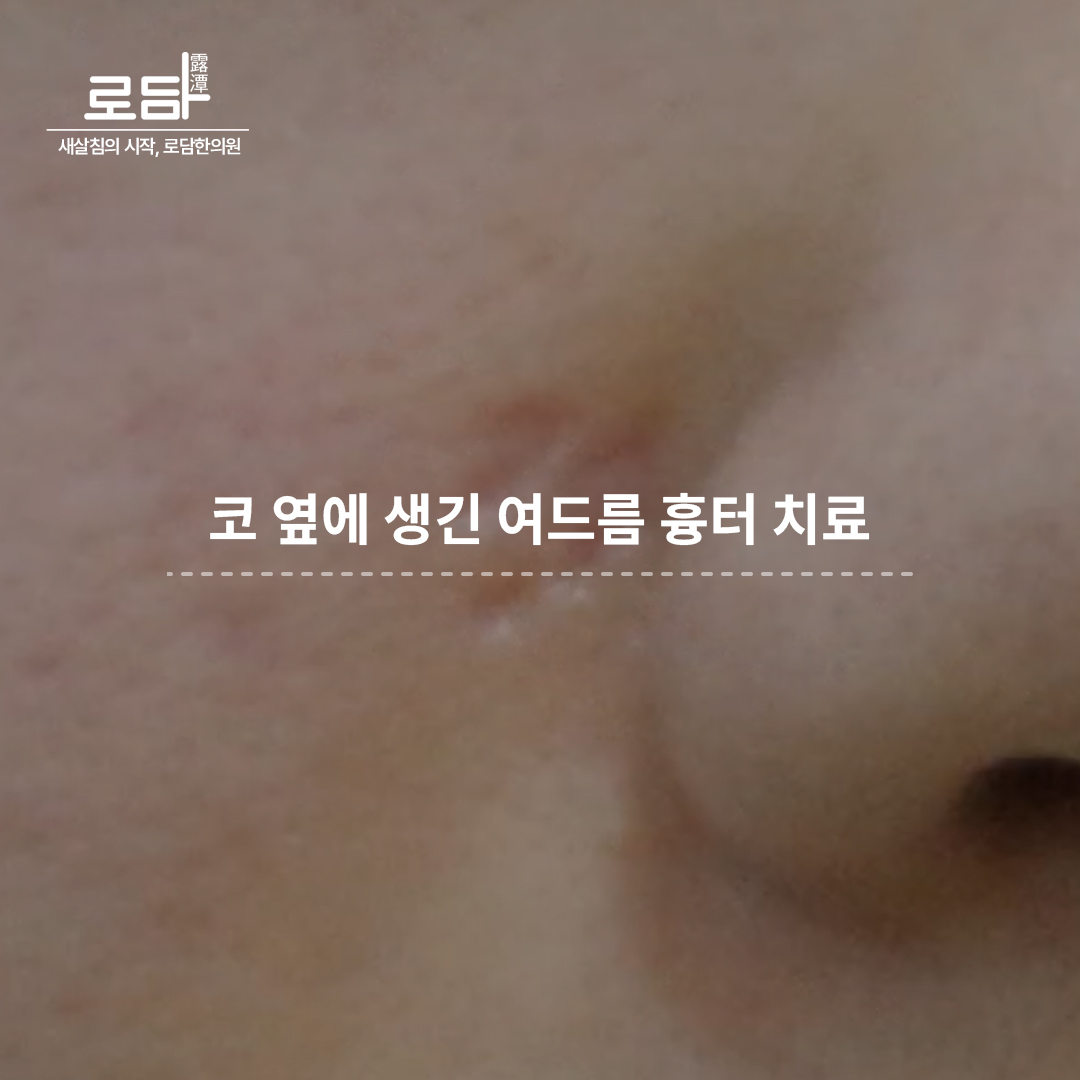 안녕하세요, 흉터 지우는 새살침의 시작 로담한의원입니다.얼굴에 생긴 여드름을 제대로 관리하지 못하게 되면 흉터로 이어지기 쉽습니다.특히 코 옆에 패인 흉터가 생기는 경우 치료가 어렵습니다.이는 코 근처 피부 구조와 특성 때문으로 코는 피지선이 많고 피부가 얇으며연골 위에 바로 위치해 있어 염증 후 흉터가 깊고 남기 쉽습니다.이 때문에 일반적인 피부 재생 치료가 잘 적용되지...