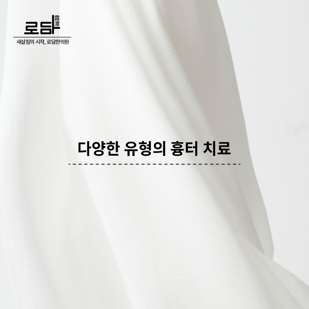 안녕하세요, 흉터 지우는 새살침의 시작 로담한의원입니다.흉터는 많은 분들이 겪는 대표적인 피부 고민 중 하나로,단순히 외적인 모습에 그치지 않고 심리적인 자신감에도 큰 영향을 줄 수 있습니다.이러한 이유로 다양한 치료법이 연구되고 있으며,그중 새살침은 최근 많은 관심을 받고 있는 방법입니다.그러나 흉터는 패인 흉터, 튀어나온 흉터, 색소침착이 동반된 흉터 등형태와 원인에 ...